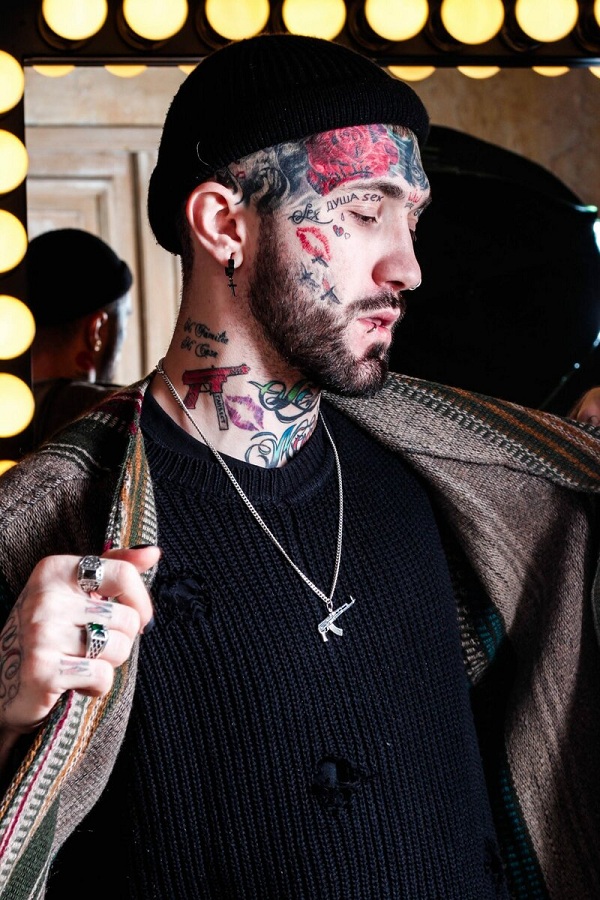 Многих поклонников завораживает вид рэп-исполнителя, чтобы поддержать свой имидж, он красит ногти в черный, красный цвет, также экспериментирует с цветом волос на голове, его лицо, руки, тело расписано различными татуировками, надписи, символы, пирсинги на лице.