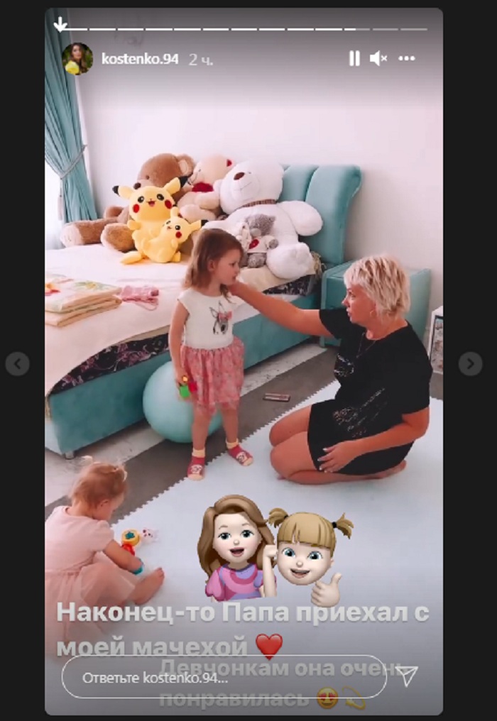 Сегодня в дом Тарасовых, навестить внучек приехал отец Анастасии и ее мачеха. Модель впервые показала, как выглядит новая жена ее папы. У себя в сториз она написала, что ее дочери Ева и Милана впервые познакомились с ней и отметила, что девчонкам она очень понравилась.
