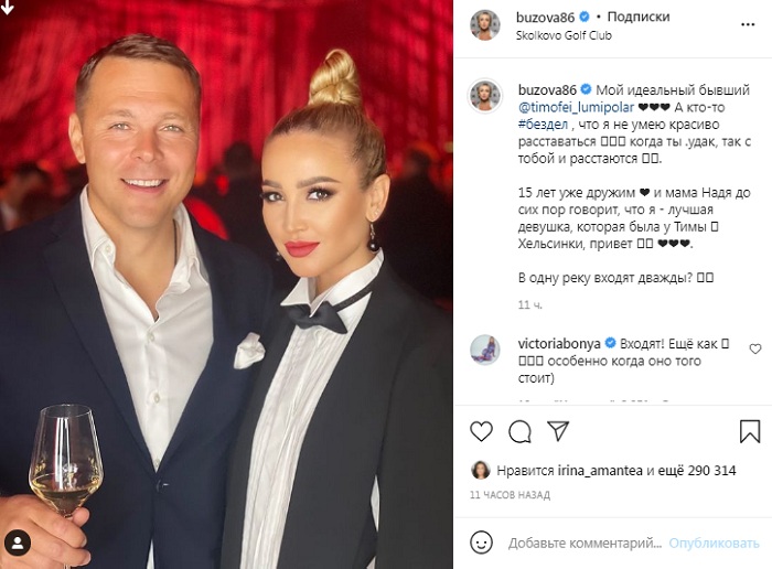 Накануне, экс-ведущая «Дома-2» появилась на мероприятии, где встретила своего бывшего возлюбленного Майорова. Бузова назвала его идеальным бывшим, чем сильно задела мужское эго Давида Манукяна. Ольга отметила, что с Тимофеем ей удалось остаться в хороших отношениях: «Даже мама Тимы до сих пор называет меня идеальной невесткой» — призналась певица.