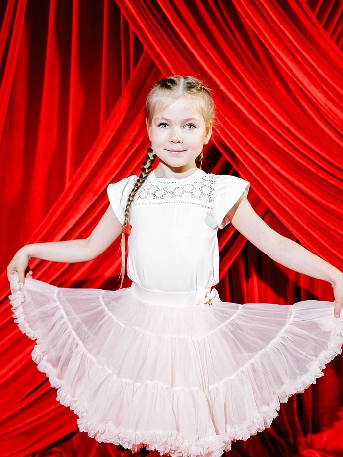 Перед камерой девочка чувствует себя вполне уверенно. Она уже участвовала в фотосессиях, примеряла разные образы и спокойно ждала, пока стилисты завершат работу. Без капризов и усталости — как настоящий профессионал. Похоже, характер у неё действительно мамин: сильный, уверенный и творческий.